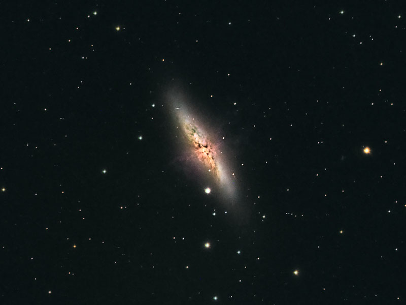 Messier 82 (also known as NGC 3034, Cigar Galaxy) is a starburst galaxy about 12 million light-years away in the constellation Ursa Major.