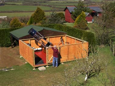 | Our first observatory and half meter Dobsonian as seen by day. The roll off roof and sheltered position can also be clearly seen. | ![]() |