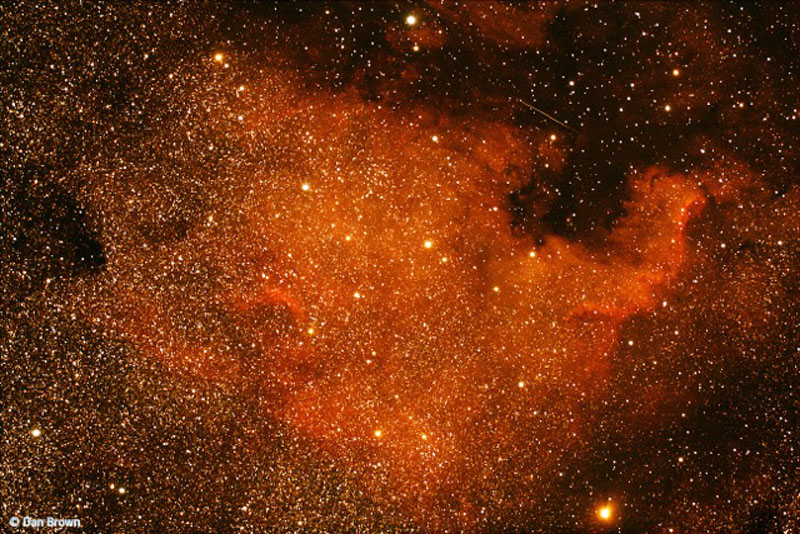 The remarkable shape of the nebula resembles that of the continent of North America.
